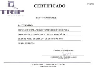 Após passar pelo difícil processo seletivo, Sady é admitido na TRIP como copiloto de ATR. Início do curso teórico do ATR, em Campinas, na sede